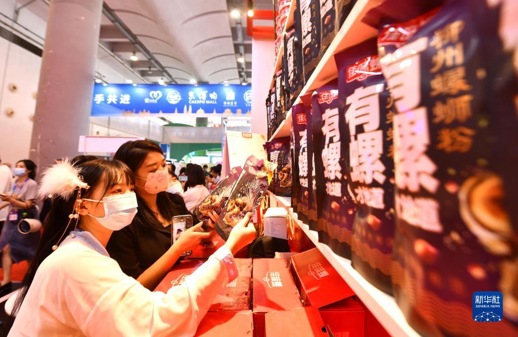 9月16日,在南寧國際會展中心,參觀者在選購柳州螺螄粉。