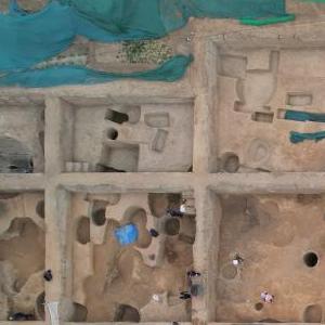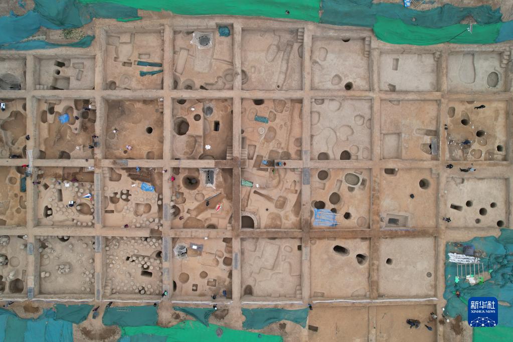 這是3月3日拍攝的鄭州商城遺址商代中期高等級貴族墓葬區發掘現場(無人機照片)。