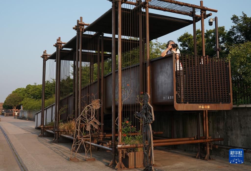 楊浦濱江的紗廠廊架,既是帶有歷史記憶的工業元素,又是供人們觀景休閑的服務設施(2022年7月28日攝)。
