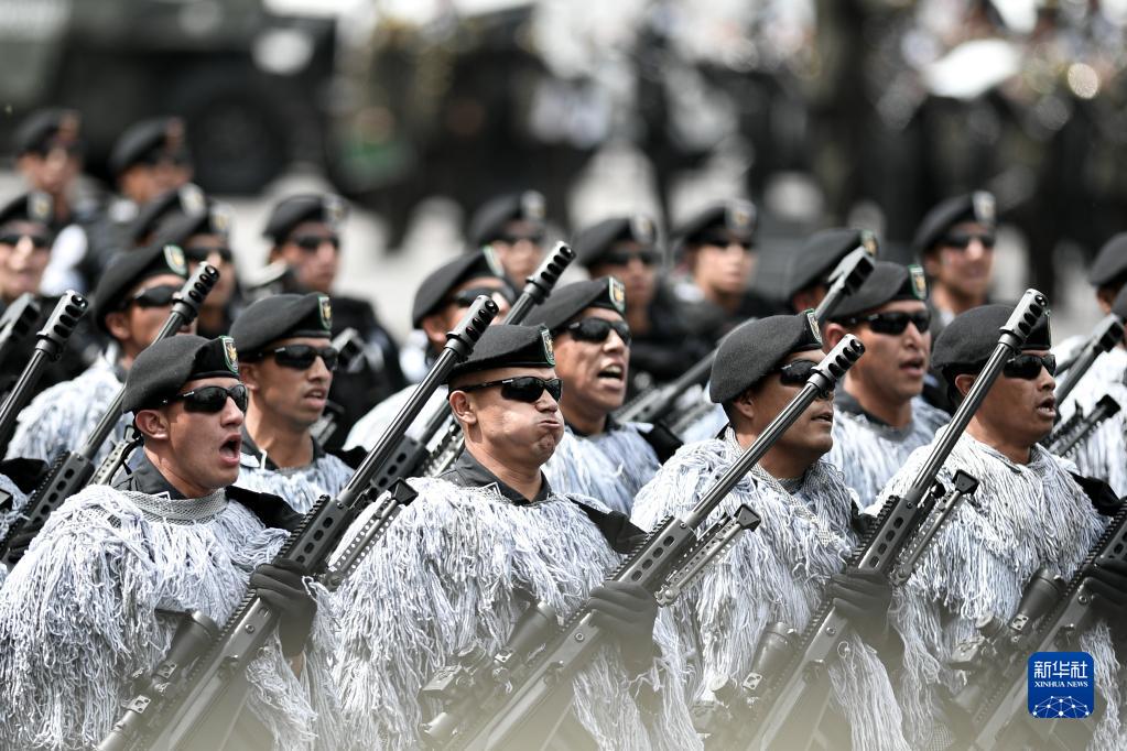 9月16日,在墨西哥首都墨西哥城,墨西哥國民警衛隊參加閱兵式。