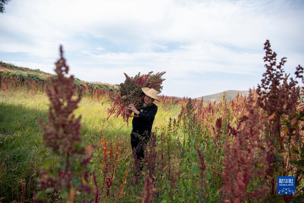 時下,位于山西省忻州市靜樂縣的5萬多畝藜麥陸續進入成熟期,農民利用晴好天氣進行收割,田間地頭一派忙碌景象。