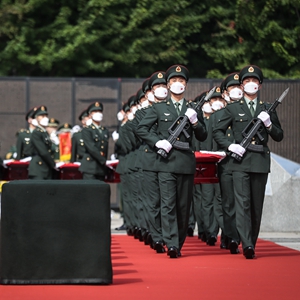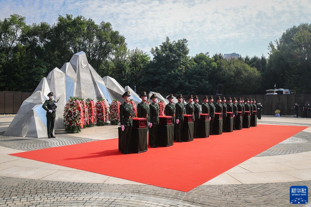 當日,第九批在韓中國人民志愿軍烈士遺骸安葬儀式在沈陽抗美援朝烈士陵園舉行,88名為國戰斗犧牲在異國他鄉的志愿軍英烈在祖國的大地上安息。