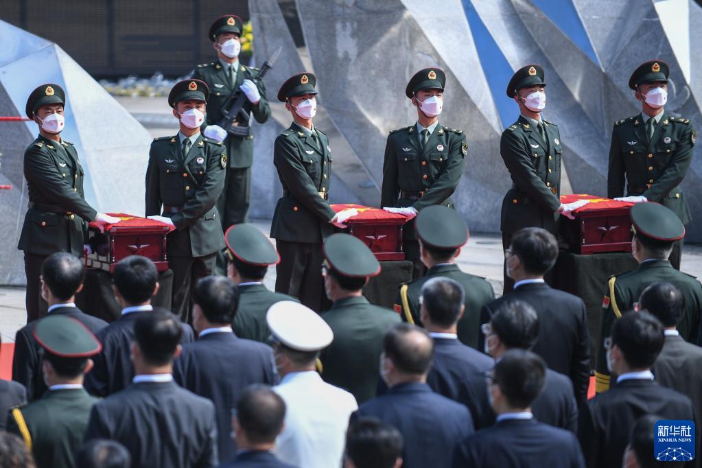 當日,第九批在韓中國人民志愿軍烈士遺骸安葬儀式在沈陽抗美援朝烈士陵園舉行,88名為國戰斗犧牲在異國他鄉的志愿軍英烈在祖國的大地上安息。