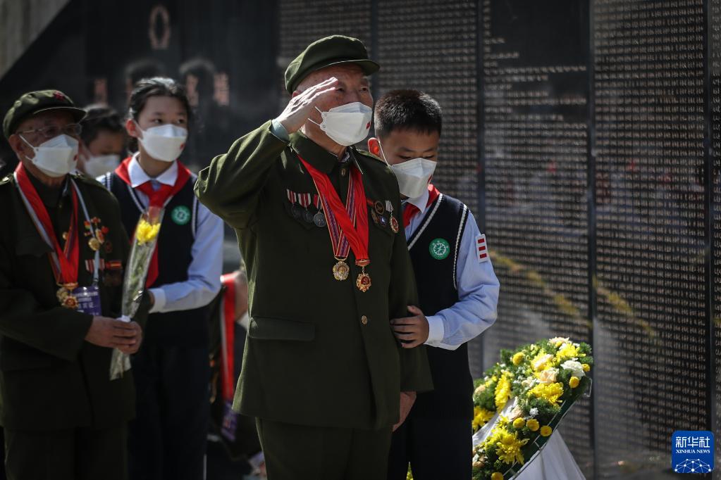 9月17日,志愿軍老兵崔龍福向烈士英名墻敬禮。