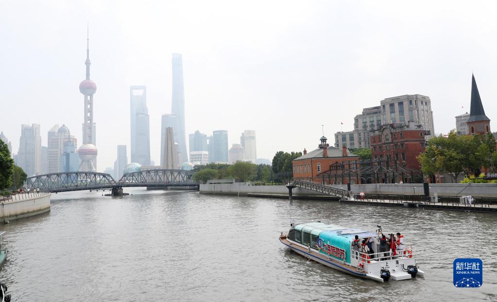 當日,三艘“時空之梭”電動旅游觀光船從位于蘇州河畔的上海長風公園碼頭啟航,開啟蘇州河旅游水上航線試運營。