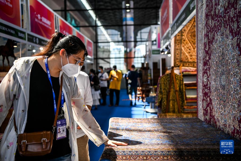 9月16日,在南寧國際會展中心,參觀者在選購地毯。