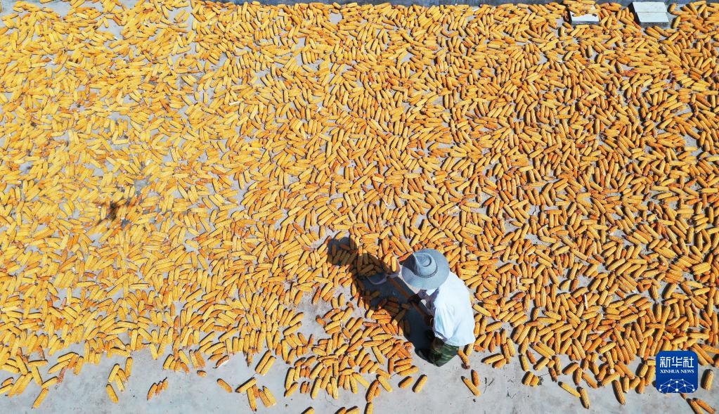 金秋時節,農民忙著收獲晾曬,到處是一派豐收景象。