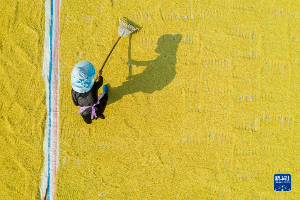 金秋時節,農民忙著收獲晾曬,到處是一派豐收景象。