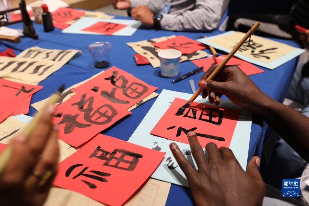 當日,在吉布提非洲青年創新創業中心,吉布提孔子學院老師為來自吉布提、埃賽俄比亞、肯尼亞、烏干達的非洲創業青年上了一堂生動的中國文化課。風俗、書法、剪紙等中國文化引起了學員們的廣泛興趣。