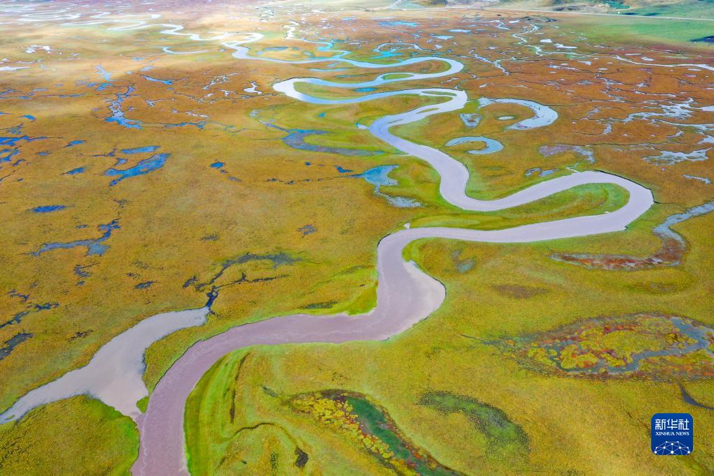 這是瑪曲縣阿萬倉濕地內的河流和沼澤(9月17日攝,無人機照片)。