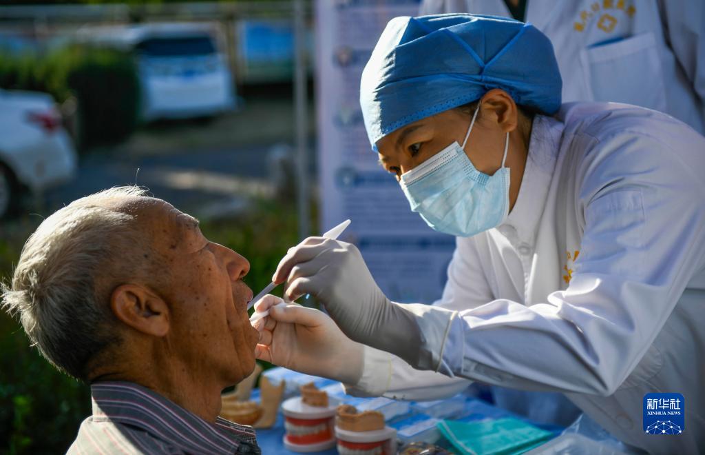 9月19日,醫生在河北省遵化市興旺寨鎮何家峪村為村民檢查牙齒。