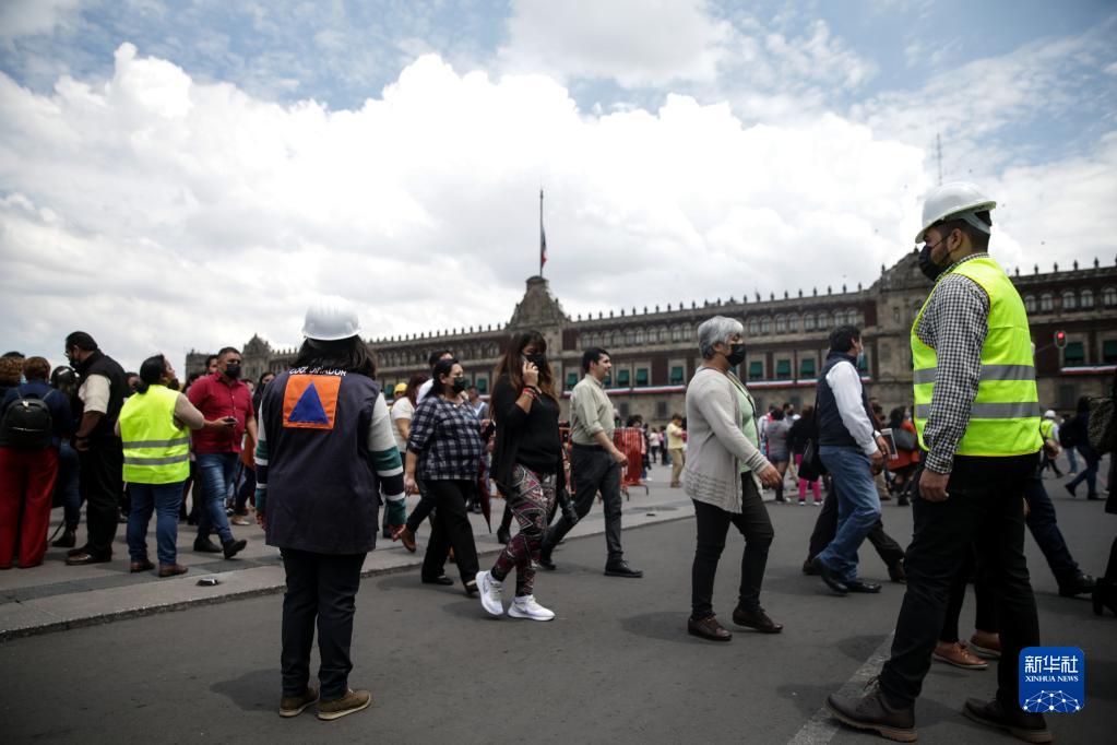 9月19日,在墨西哥首都墨西哥城,人們在一處廣場避險。