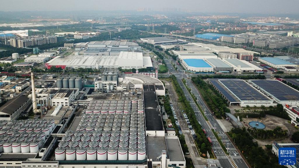 位于廣東省佛山市三水區的“水都基地”是年工業產值超500億元的飲料食品特色產業園區(9月17日攝,無人機照片)。