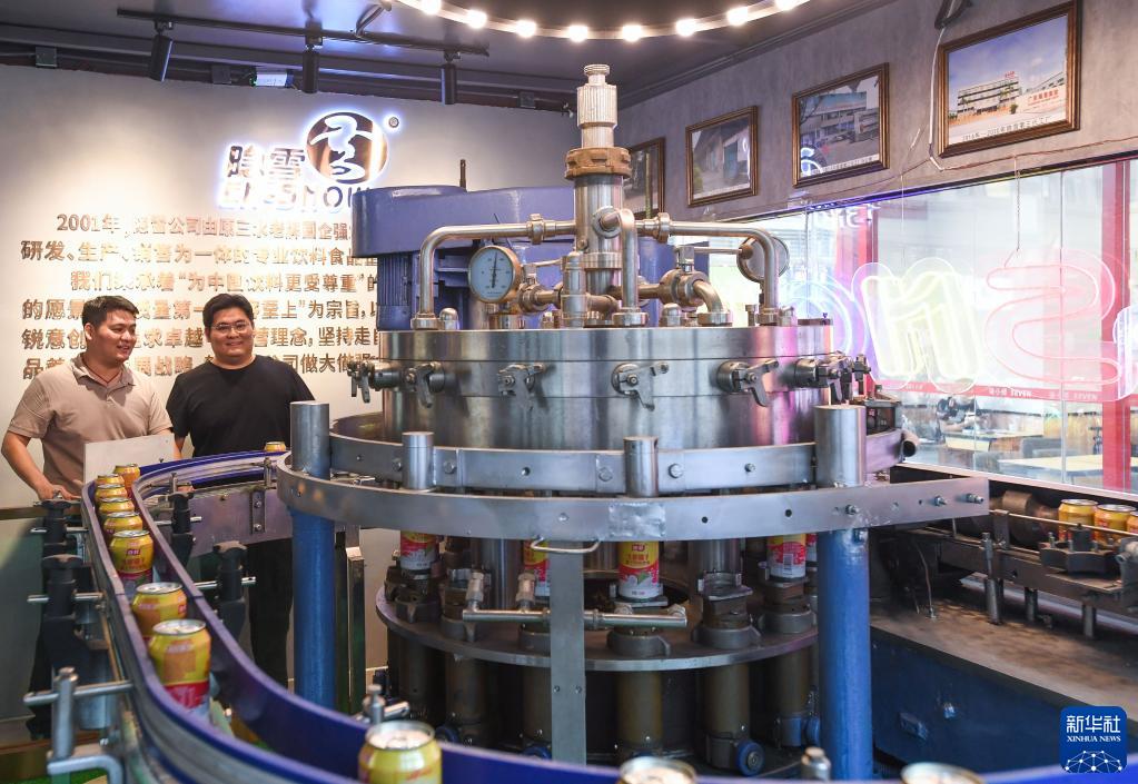 陳列在三水隱雪制造體驗館的中國第一條進口易拉罐飲料生產線(9月17日攝)。