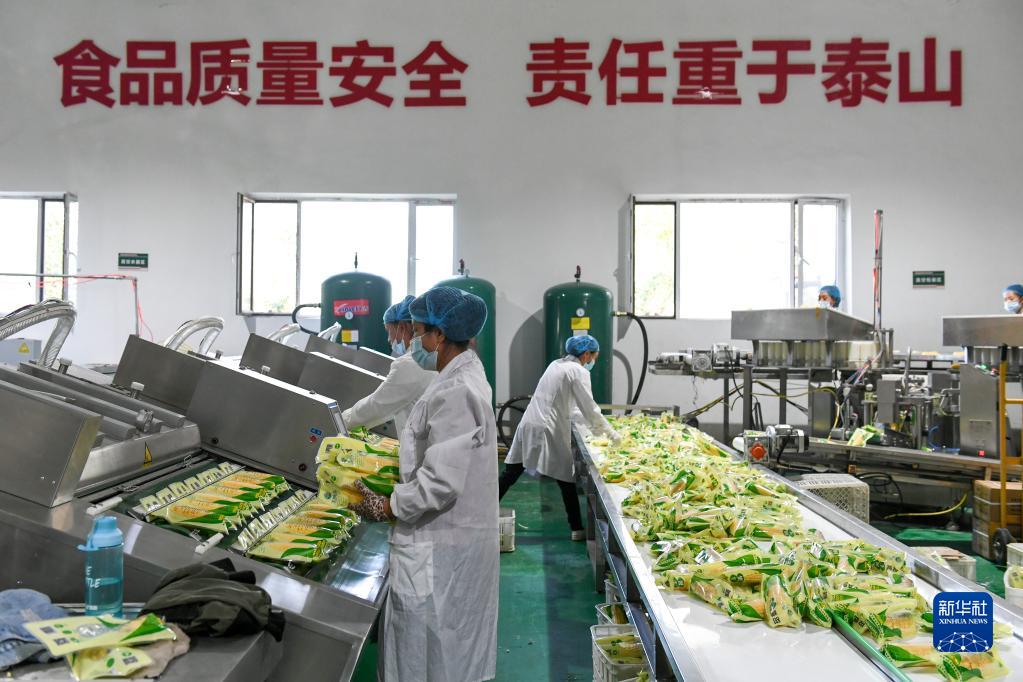 9月20日拍攝的準格爾旗一家食品加工廠內的鮮食甜糯玉米真空包裝車間。