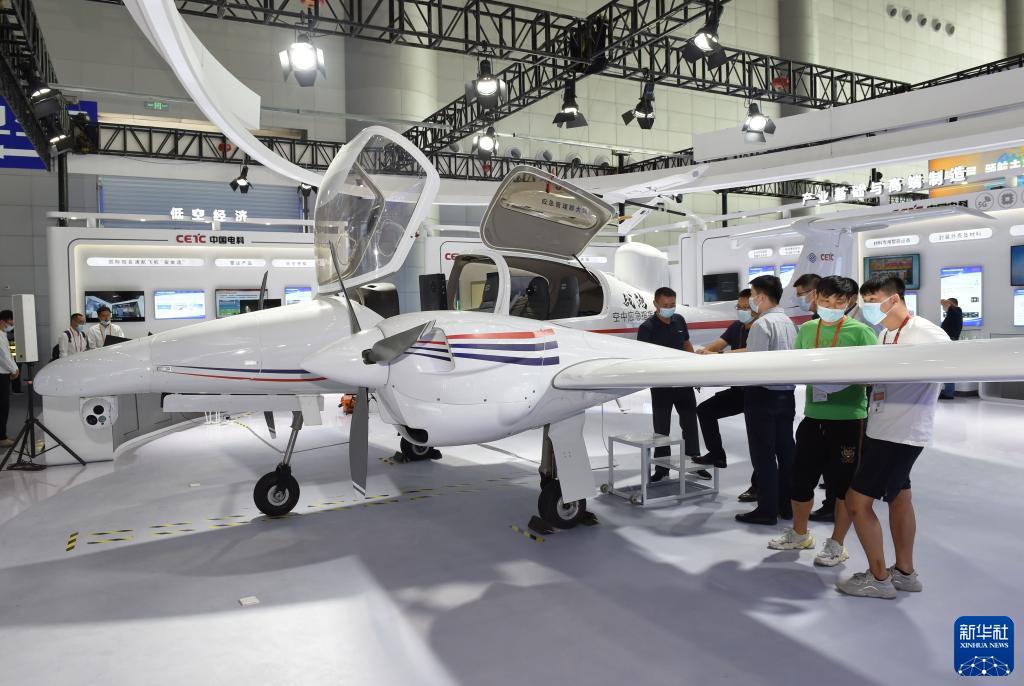 9月20日,參觀者在2022世界制造業大會上參觀展出的空中應急指揮機。