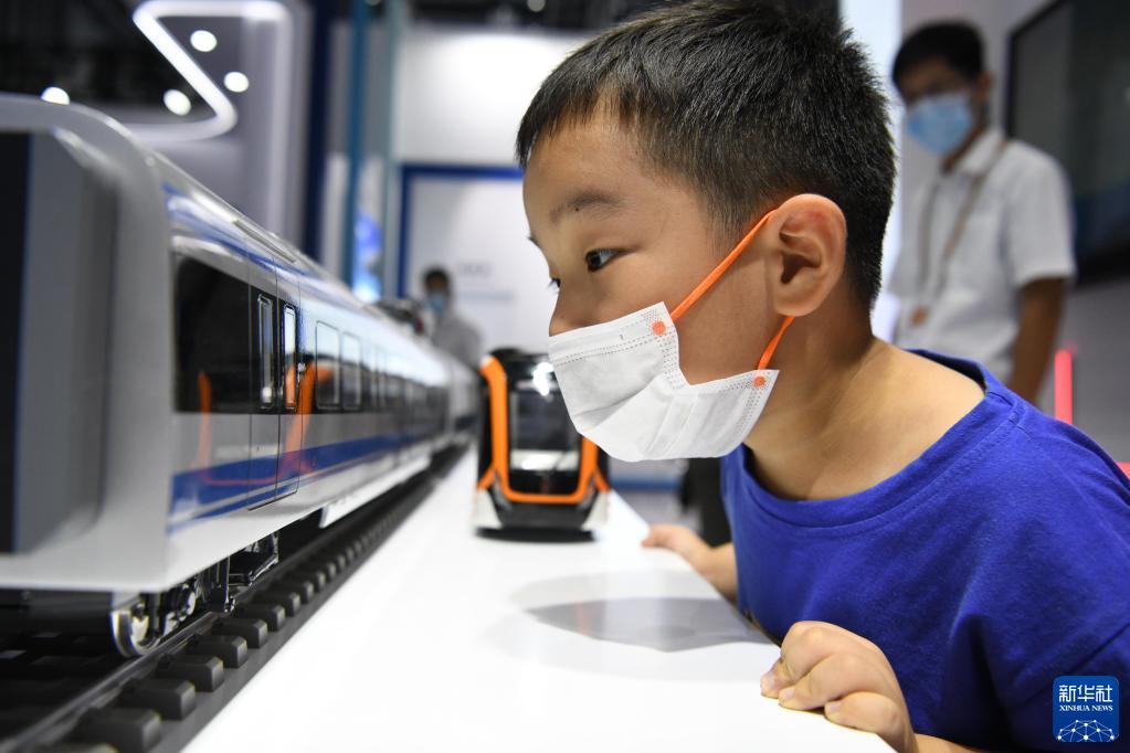 9月20日,在2022世界制造業大會上,小朋友在中國中車展臺參觀。