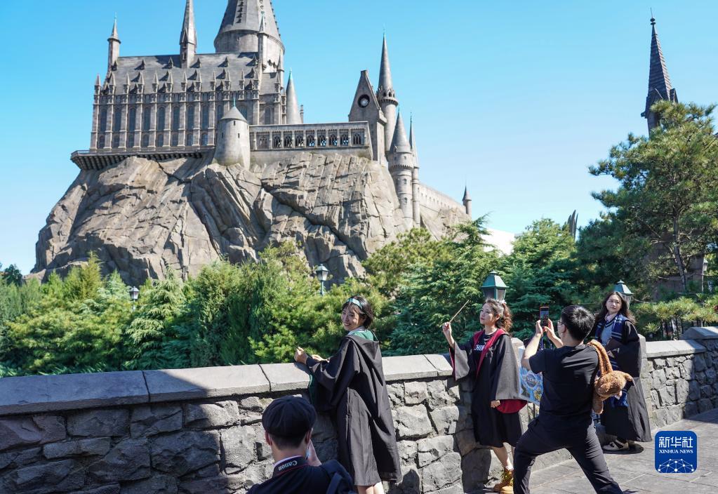 9月20日,游客在北京環球影城哈利·波特的魔法世界主題景區拍照。