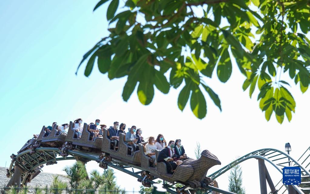 9月20日,游客在北京環球影城體驗“鷹馬飛行”。