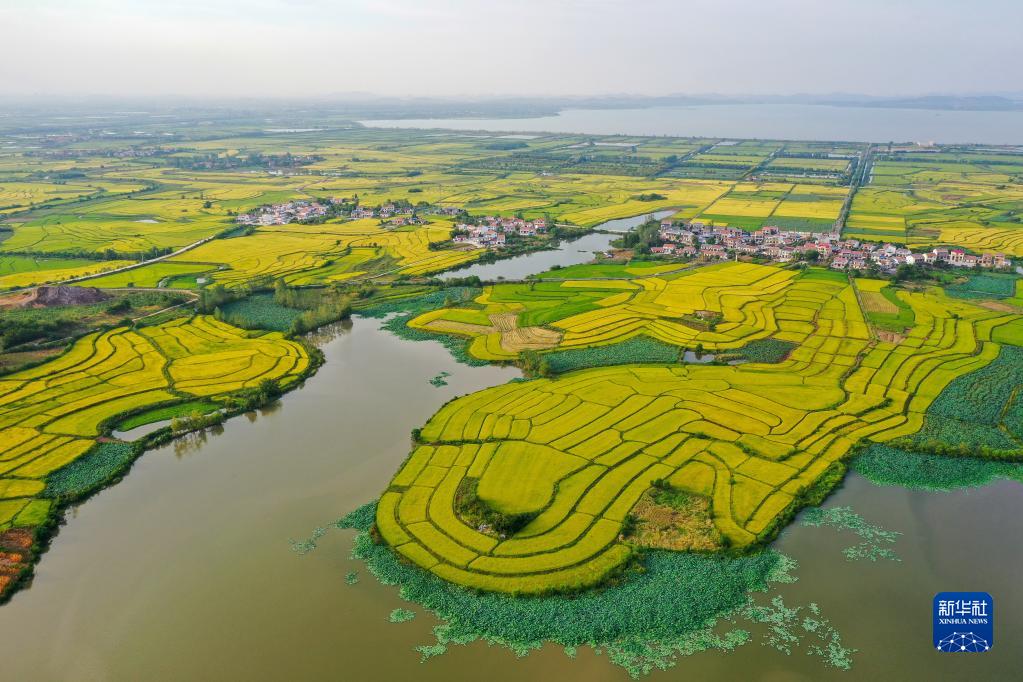 9月9日在湖北武漢江夏區法泗鎮拍攝的進入成熟期的稻田(無人機照片)。