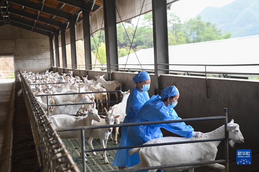 9月21日,在杭州市臨安區昌化鎮后營村的牧羊谷,張東莉(左)與同事給新進的羊采血。張東莉與丈夫共同創辦的牧羊谷羊場存欄湖羊和山羊2000多只,是集現代化養殖、旅游、餐飲于一體的新型畜牧企業。