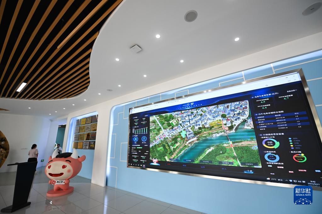 9月21日拍攝的杭州市臨安區昌化鎮白牛村電商大樓農創客中心的數字大屏。