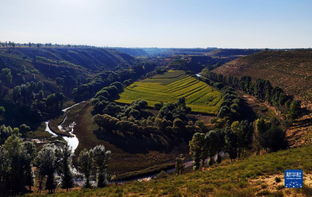 秋日,黃河一級支流無定河流域的水稻、玉米等莊稼即將成熟,美景如畫。