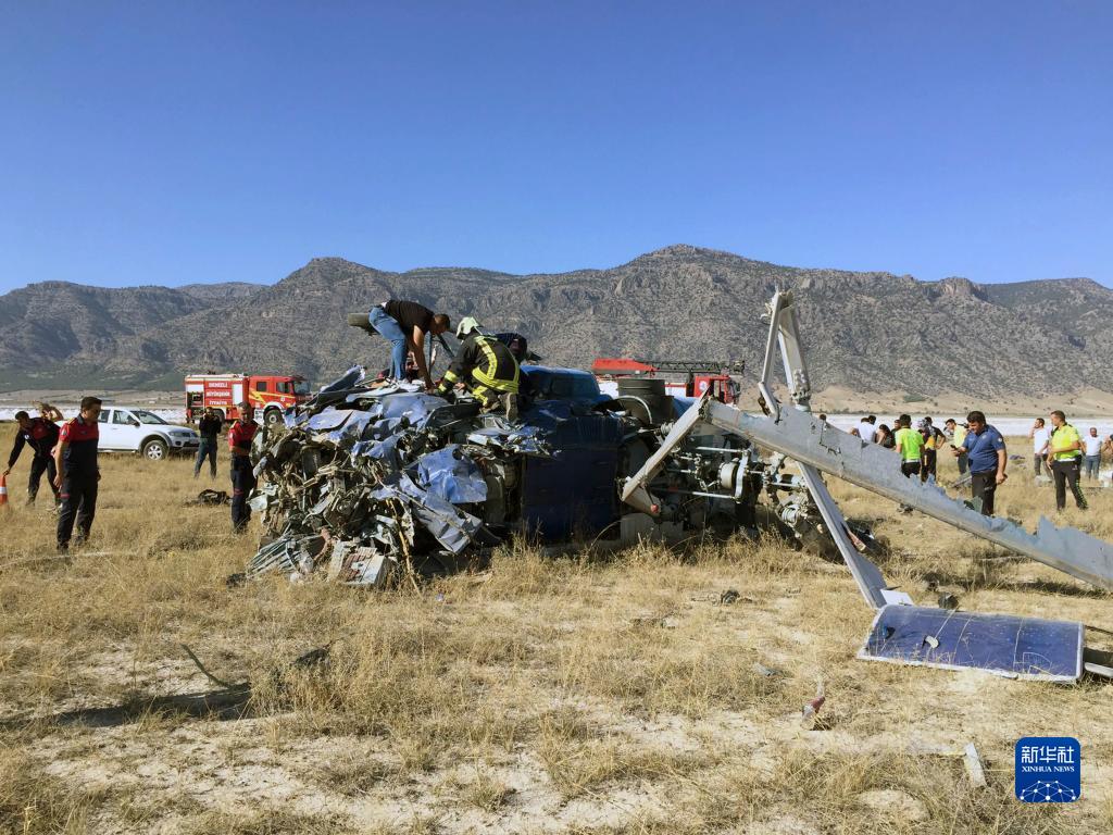 這是9月21日在土耳其代尼茲利省西南部拍攝的直升機墜毀現場。