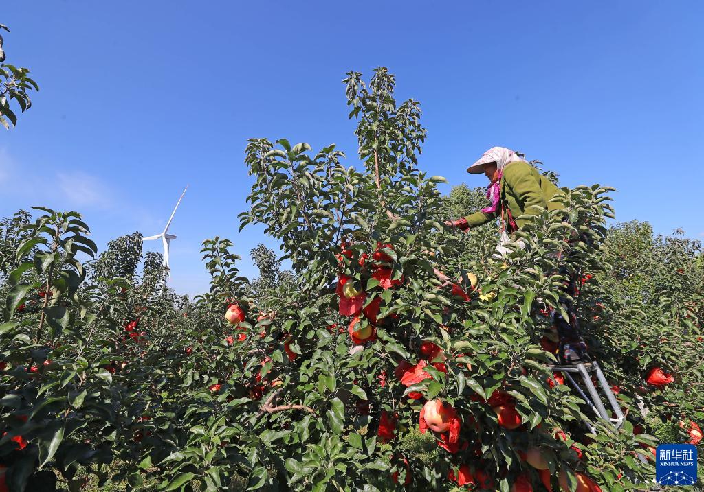 近日,在遼寧省沈陽市康平縣方家屯鎮,康平紅薯、蘋果、小米等特色地標農產品豐收在望,農民在田間果園采摘勞作。據統計,康平縣今年種植小米5000余畝、寒富蘋果3.5萬畝、紅薯近2萬畝,均喜獲豐收。