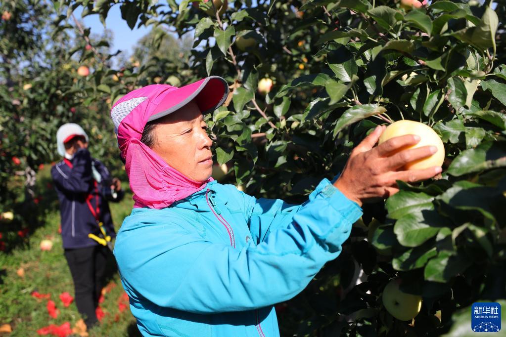 近日,在遼寧省沈陽市康平縣方家屯鎮,康平紅薯、蘋果、小米等特色地標農產品豐收在望,農民在田間果園采摘勞作。據統計,康平縣今年種植小米5000余畝、寒富蘋果3.5萬畝、紅薯近2萬畝,均喜獲豐收。
