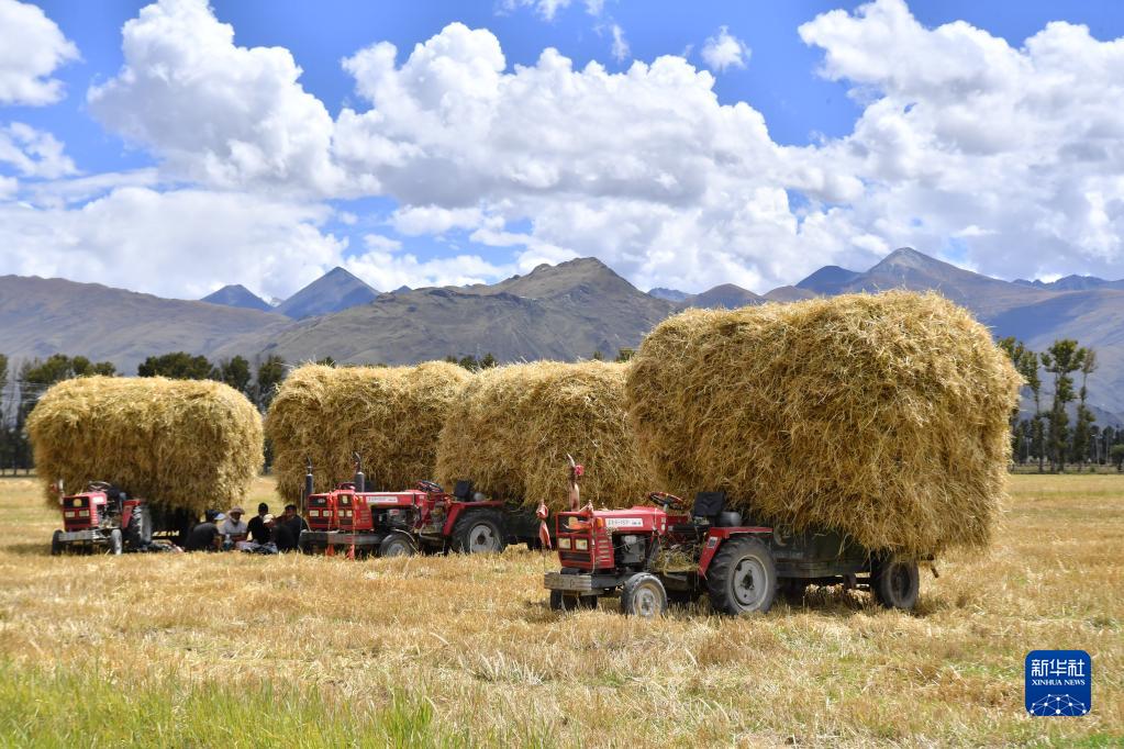 第五個中國農民豐收節在即,西藏自治區拉薩市林周縣的田間地頭一片繁忙。據了解,林周縣目前累計糧食收獲面積為12.43萬畝,已收獲秋糧總產量預估6萬噸,豐收在望。