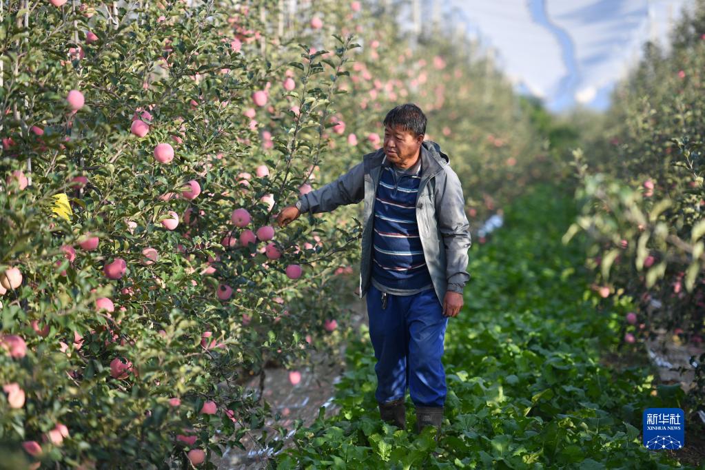 9月20日,洛川縣舊縣鎮故現村村民王效民在果園內管理果樹。