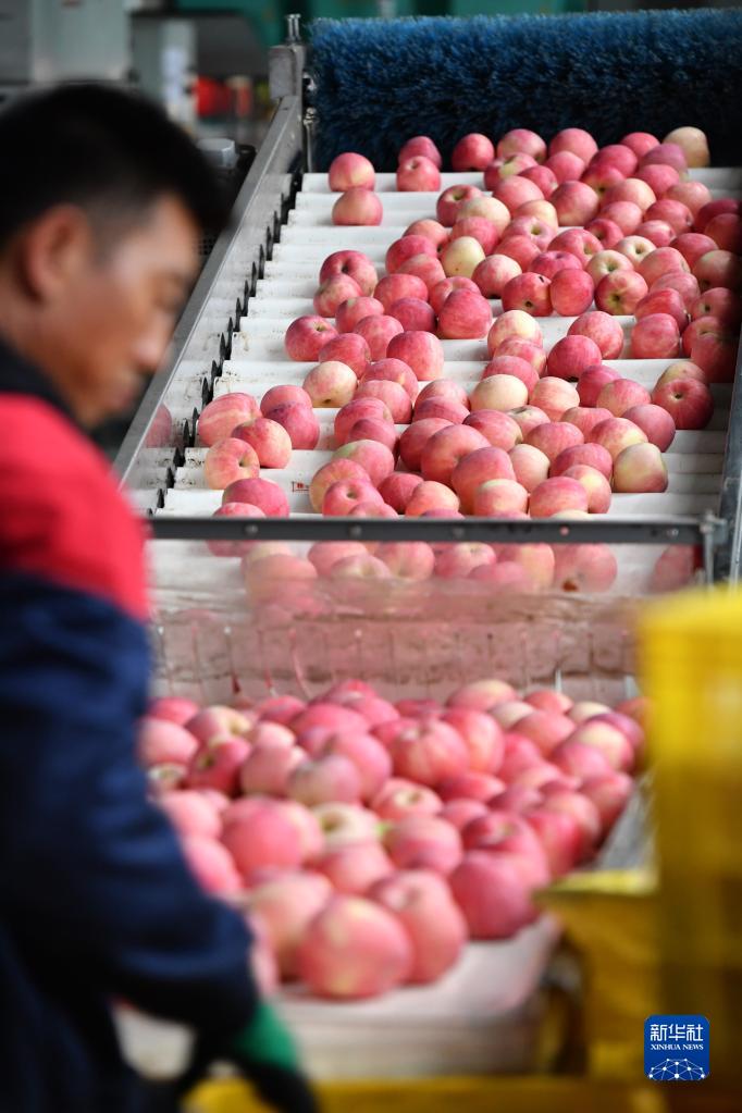 9月20日,洛川縣一家果業公司的工作人員在選果線上忙碌。