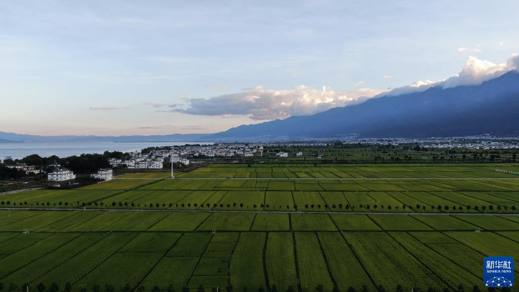 俯瞰云南大理洱海畔連片的稻田(9月21日攝,無人機照片)。