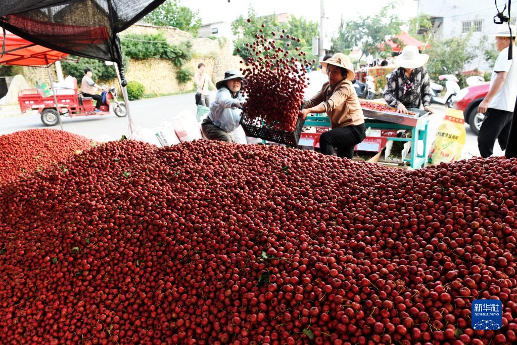 在山東省新泰市劉杜鎮南流泉村,紅彤彤的山楂掛滿枝頭,村民們忙著采摘、包裝、交易。劉杜鎮是遠近聞名的山楂產地,全鎮山楂種植面積2.3萬畝。