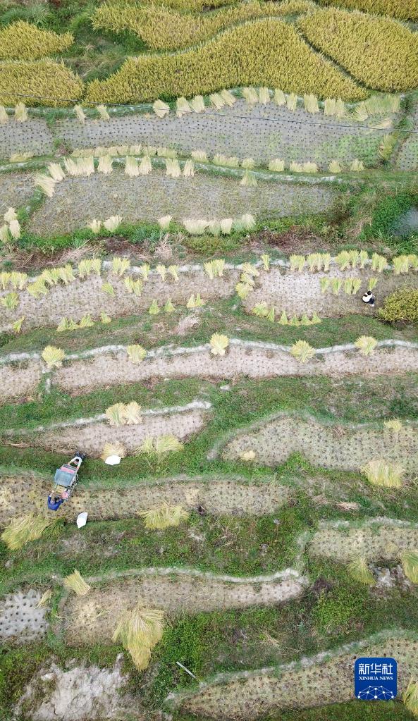 金秋時節,湖南省婁底市新化縣紫鵲界梯田的水稻進入成熟收割期。紫鵲界梯田是世界灌溉工程遺產和全國首批19個重要農業文化遺產之一,梯田層層疊疊連綿起伏。