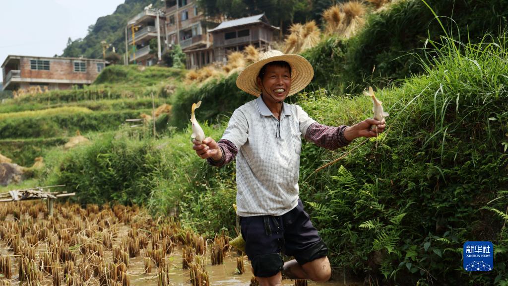 當下,廣西融水苗族自治縣上萬畝稻魚綜合養殖生產基地迎來收獲季,苗族群眾緊抓時令忙秋收。