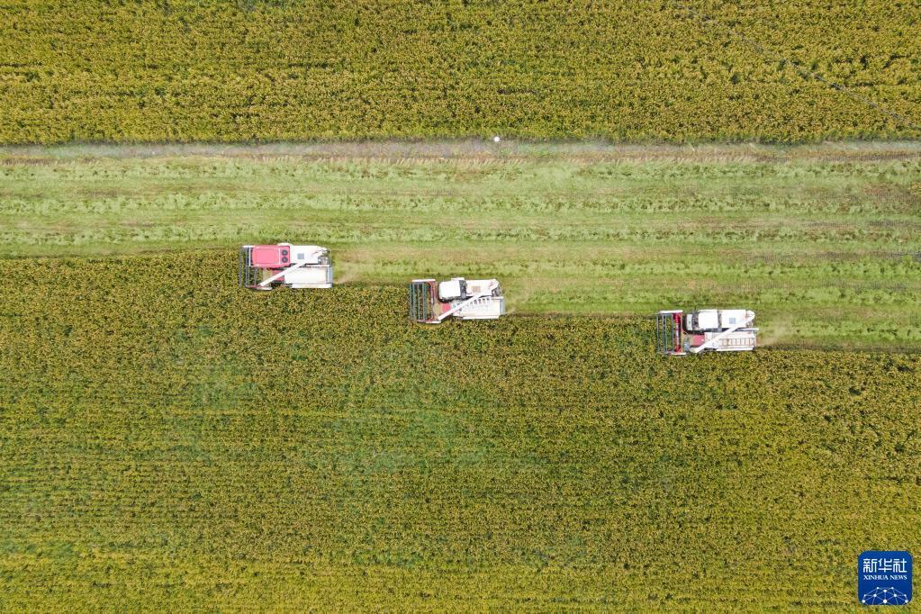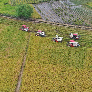 時值秋收,農業大省四川省各地農田里一片繁忙的收割景象。