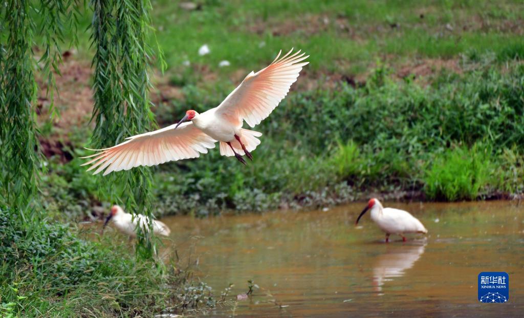 陜西省漢中市洋縣位于秦嶺南麓、漢中盆地東緣,是世界聞名的“朱鹮之鄉”。目前當地生活的朱鹮有7000多只,秋收時節,朱鹮在田間飛舞嬉戲,構成一幅自然和諧的田園美景。