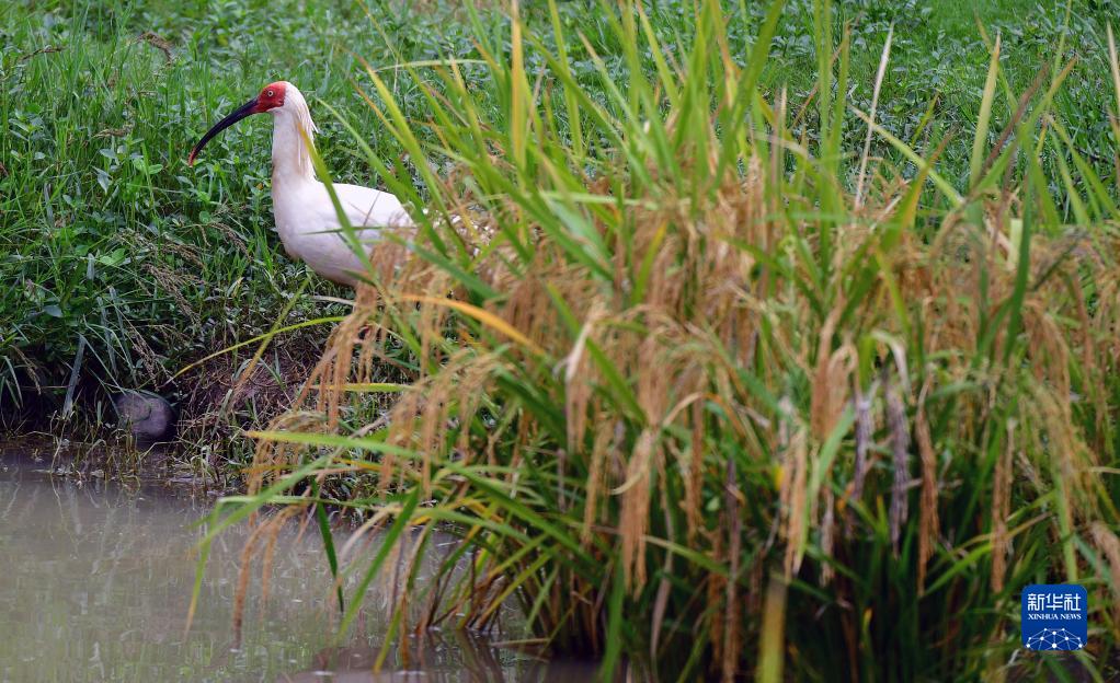 陜西省漢中市洋縣位于秦嶺南麓、漢中盆地東緣,是世界聞名的“朱鹮之鄉”。目前當地生活的朱鹮有7000多只,秋收時節,朱鹮在田間飛舞嬉戲,構成一幅自然和諧的田園美景。