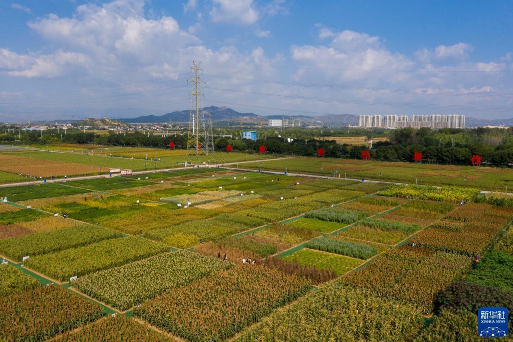 這是9月22日拍攝的位于山西省忻州市忻府區小檀村的雜糧科技展示園(無人機照片)。