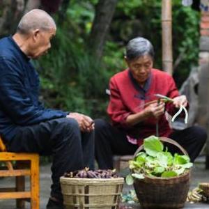9月21日,在陜西省安康市漢濱區棗園村,張萬露的爺爺奶奶在家中小院生火做飯。