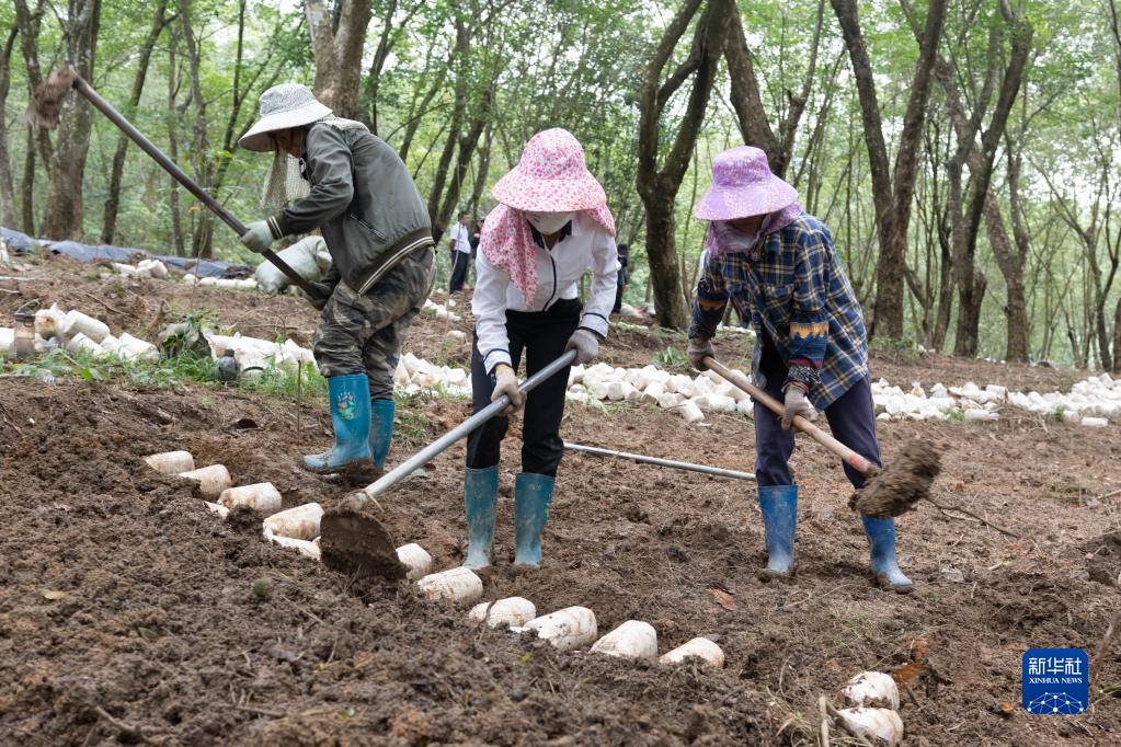 9月22日,在海南省白沙黎族自治縣青松鄉打松村,村民在種植虎奶菇。
