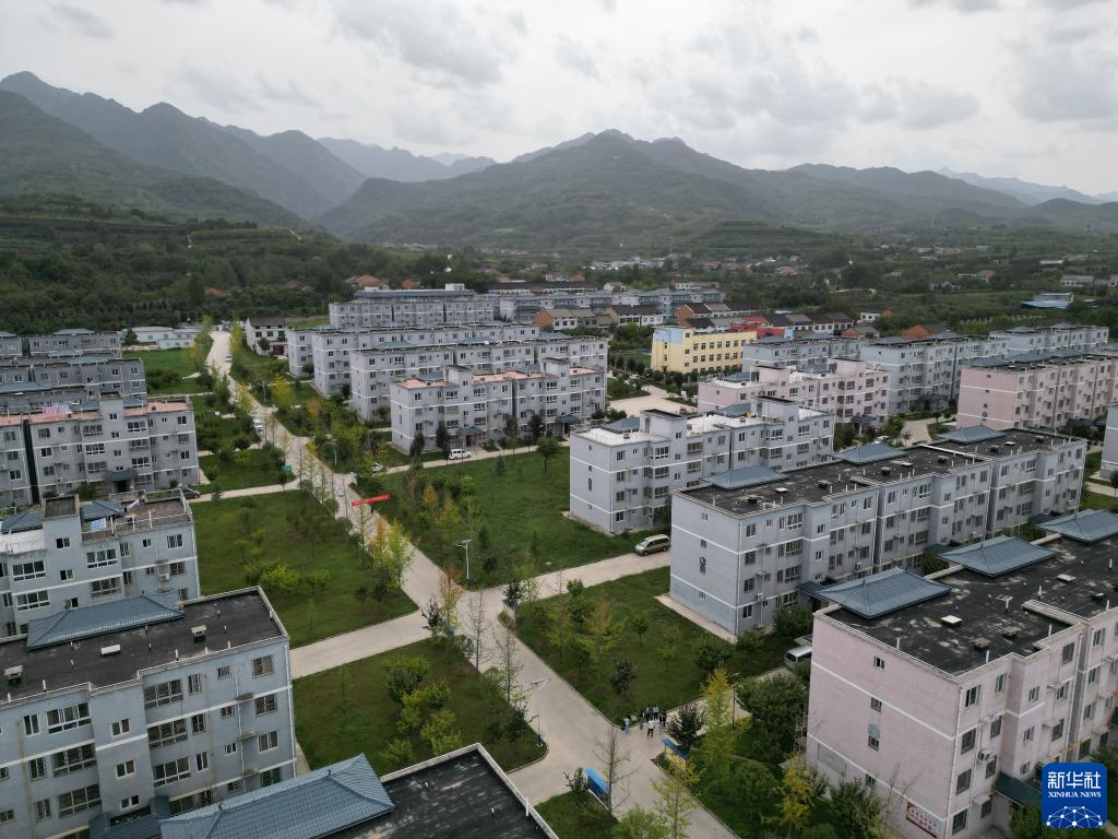 這是9月22日拍攝的陜西省周至縣馬召鎮安富園移民搬遷社區,社區居民大多從黑河水源地搬遷至此(無人機照片)。