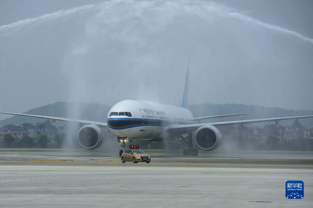 9月22日,杭州蕭山國際機場三期T4航站樓首個進港航班通過水門。