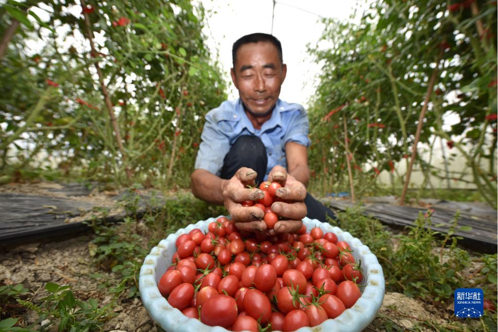 9月22日,貴州省龍里縣灣灘河鎮翠微村村民在采摘小西紅柿。