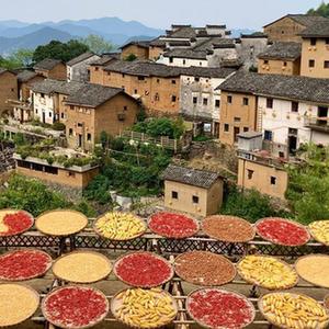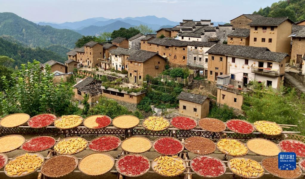 9月23日在安徽省黃山市歙縣陽產土樓拍攝的曬秋圖景。