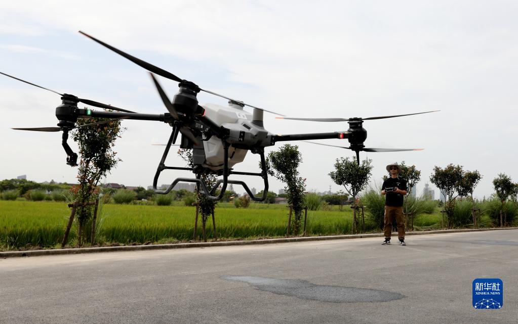9月21日,上海嘉定區外岡鎮的數字化無人農場的技術員孫佳赟操作植保無人機起飛。這個農場通過智慧管理云平臺,實現包括插秧機、拖拉機、自走式打藥機、收割機等農業作業機械的無人化,十多人的團隊就可以耕種1600畝水稻。