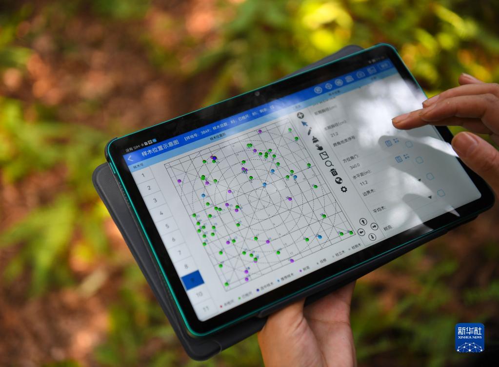 9月22日,在廣東韶關樂昌市張溪村的生態監測樣地,白拉曲珍查看軟件數據。