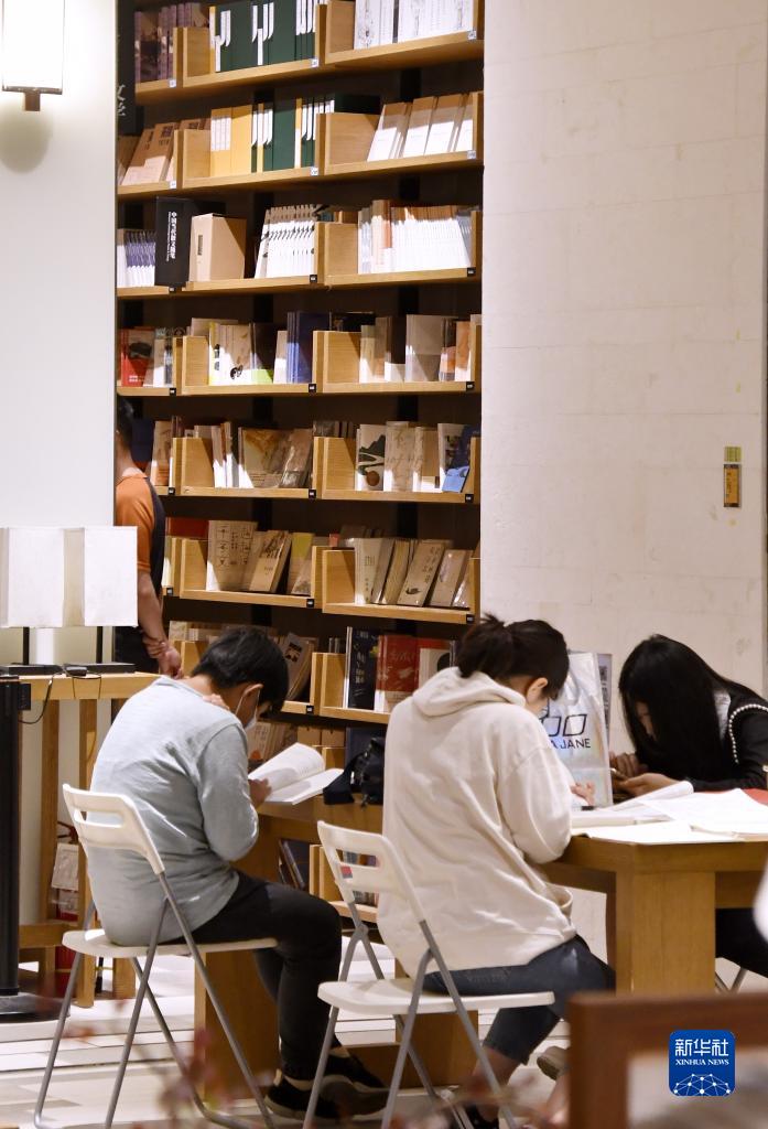 居民在北京市朝陽區一家商場內的公共閱讀空間讀書(9月21日攝)。